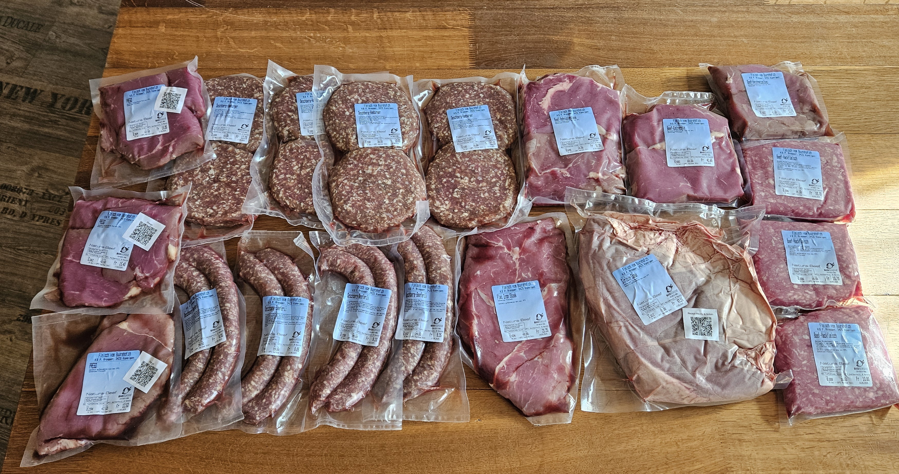 ca. 6-8 kg schwere Bio Natura Beef Sommer Grill Pakete à Fr 46.-/kg