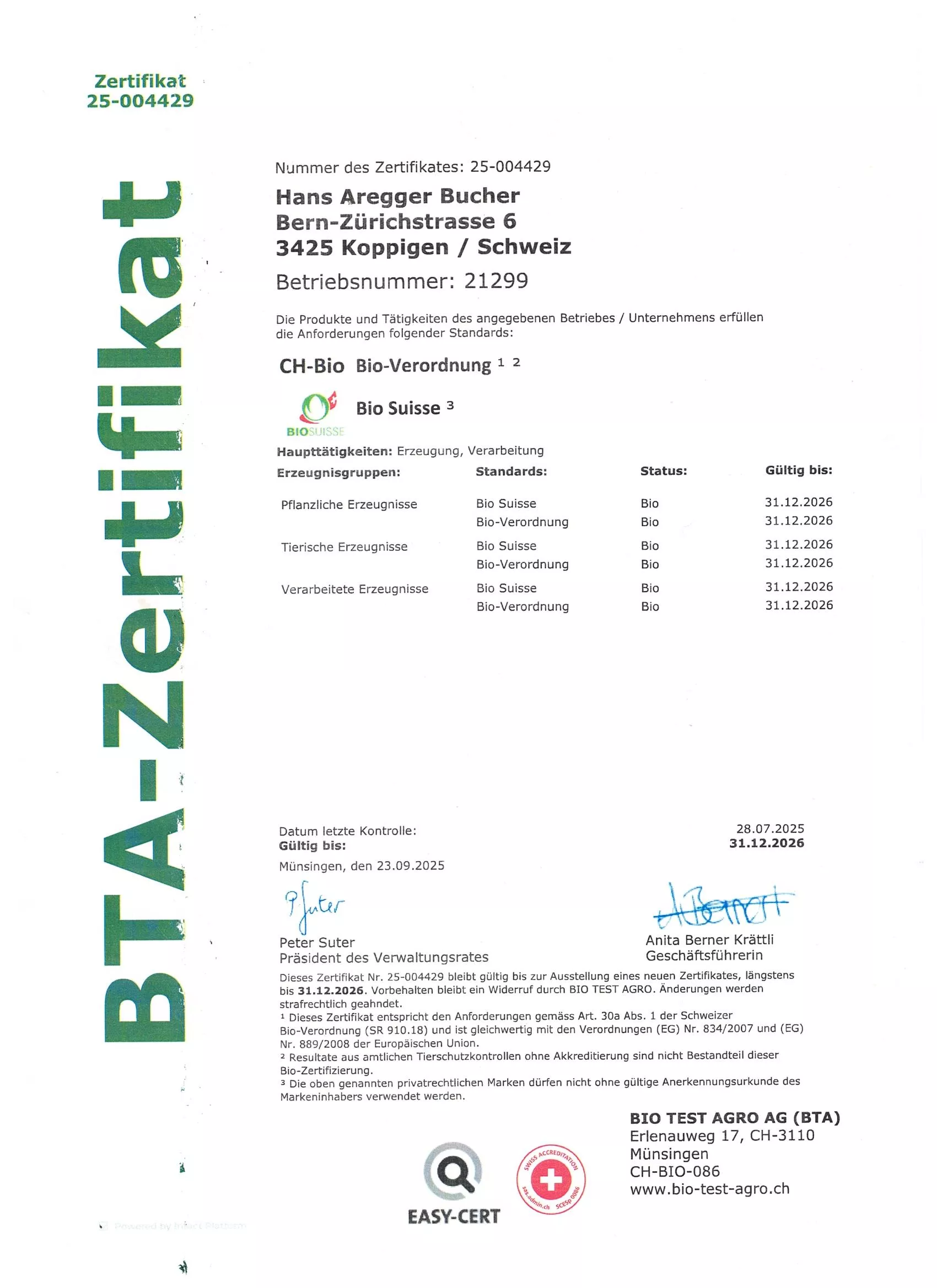 Seit 01.01.2021 bewirtschaften wir den Gutsbetrieb Oeschberg als Bio Knospe