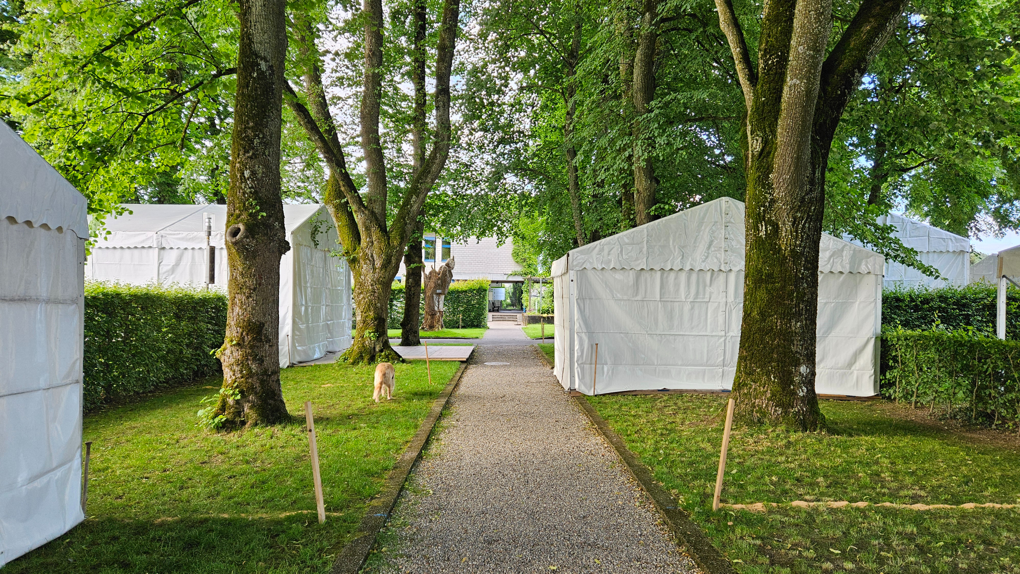 Der Park verändert sich. Schon ganz klar lässt es sich erahnen wo sich Stände der Aussteller zu finden sind...